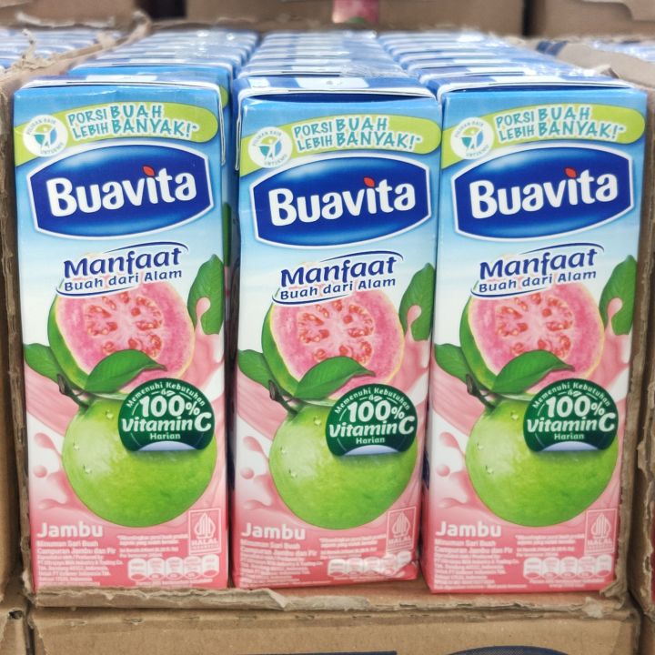 Produk Buavita dikenal karena komposisinya yang alami dan kaya akan nutrisi. Setiap kemasan minuman ini dibuat dari buah-buahan pilihan yang diproses secara higienis dan tanpa tambahan pengawet yang berbahaya. Kandungan utama dalam Buavita adalah vitamin C, serat, dan antioksidan yang berasal dari buah asli yang digunakan sebagai bahan baku. Hal ini menjadikan Buavita pilihan tepat bagi mereka yang ingin menjaga kesehatan dan meningkatkan daya tahan tubuh.