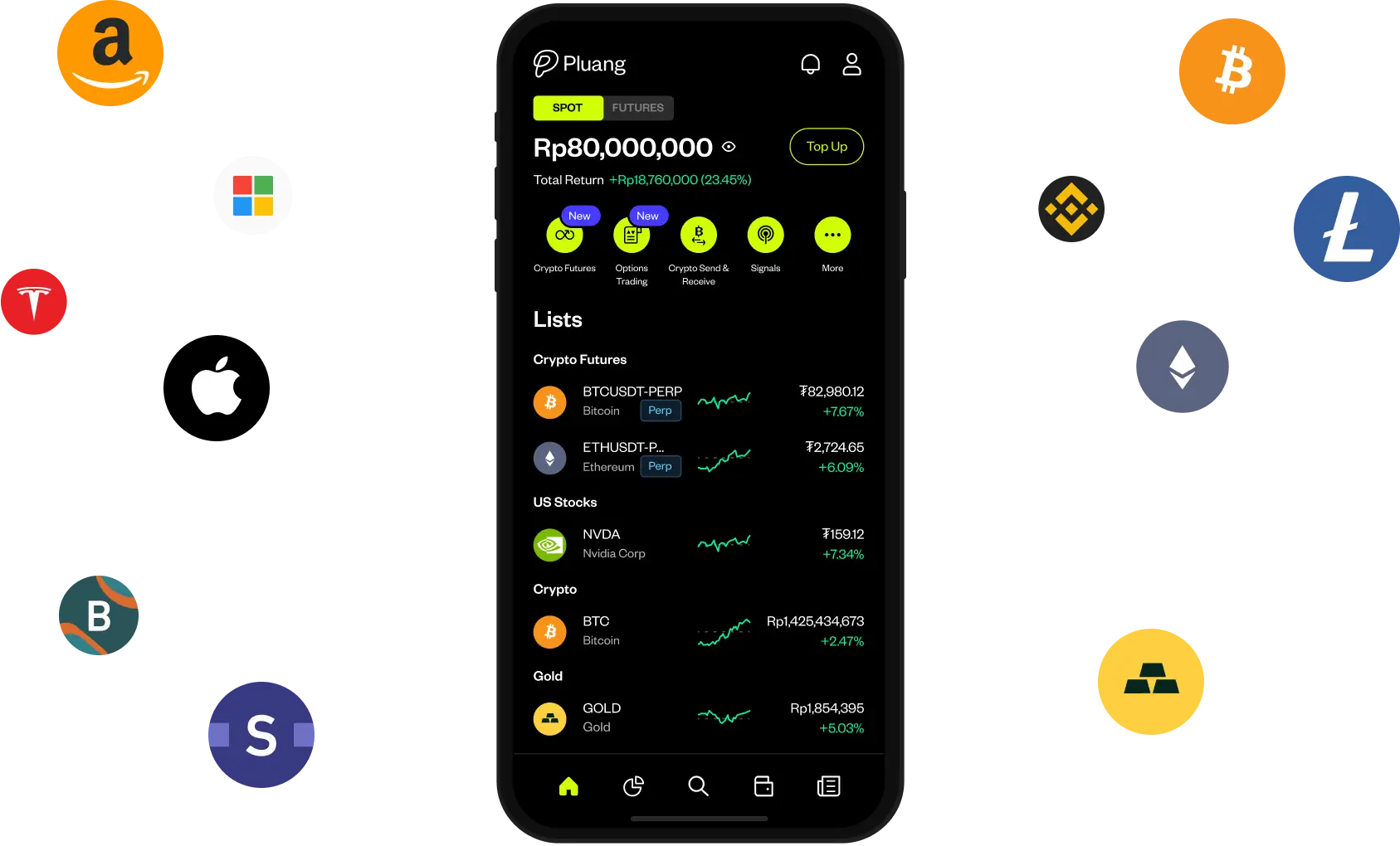 Selain itu, Pluang juga menawarkan layanan aset kripto yang memungkinkan pengguna membeli, menjual, dan menyimpan berbagai mata uang digital seperti Bitcoin dan Ethereum. Dengan adanya fitur ini, Pluang turut memperkenalkan dunia aset digital kepada masyarakat Indonesia secara aman dan terpercaya, lengkap dengan edukasi terkait risiko dan peluangnya.